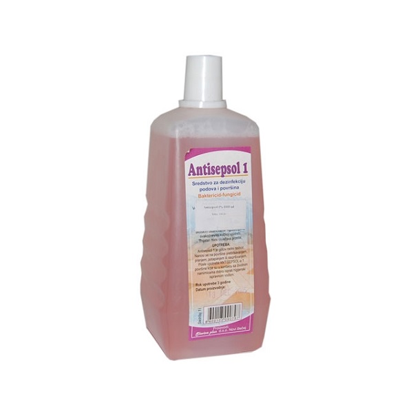 ANTISEPSOL 1 je napravljen na bazi katjonskog dezificijensa benzalkonijum hlorida, te se ne slaže sa anjonskim deterdžentima. Bistra tečnost, roza boje. Rastvor je spreman za upotrebu. Poseduje izrazito prijatan miris.NAMENA: