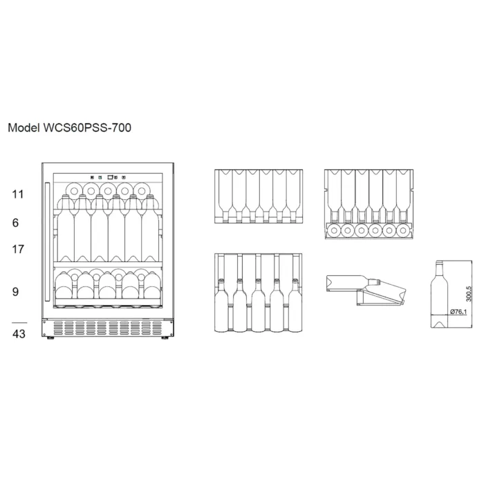 – Police su predviđene za standardne Bordeaux (0,75) boce i spram njih je deklarisan kapacitet. Ukoliko imate potrebu da čuvate veće boce, maksimalan broj boca koji može stati u vinsku vitrinu se smanjuje.