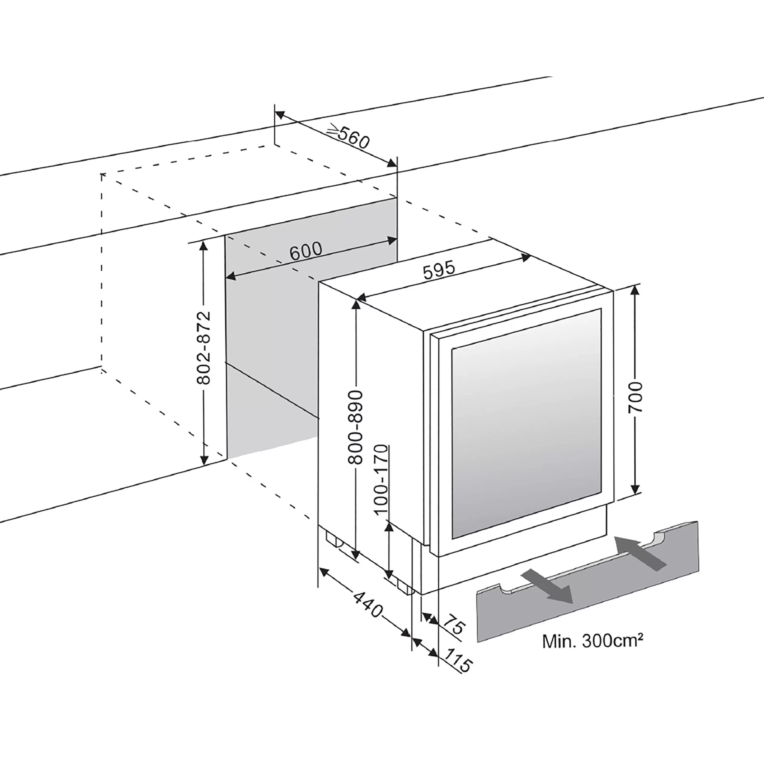 Elegantan frižider za vino za svakoga ko želi da ohladi sva svoja vina na jednoj temperaturi! Vitrina za vino ima jedinstvenu visinu vrata od 700 mm. Jedna polica za izlaganje i jedna drvena prezentacijska polica su uključene za lični prikaz vaših vina. Vinski ormarić možete lako postaviti ispod kuhinjskog pulta ili ga koristiti kao samostalan. Ima jednu temperaturnu zonu i skrivena vrata sa šarkama daje vašoj kuhinji kohezivan izgled.
