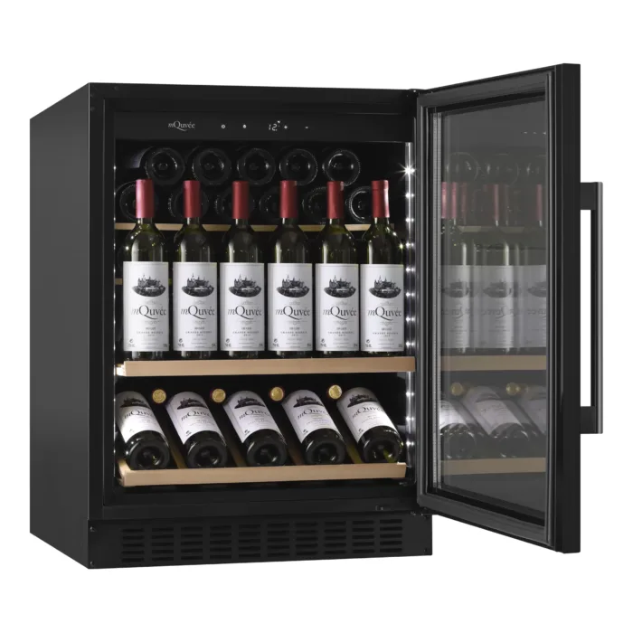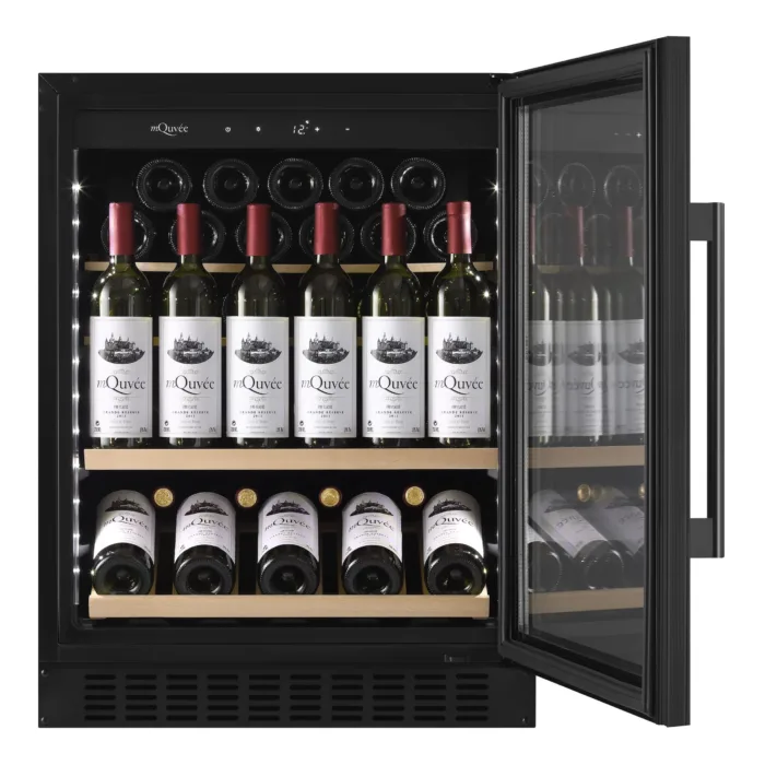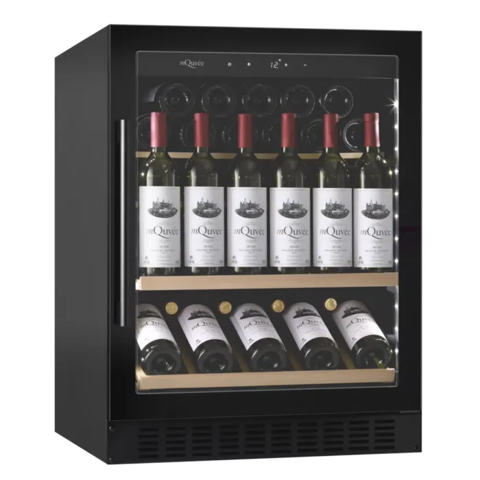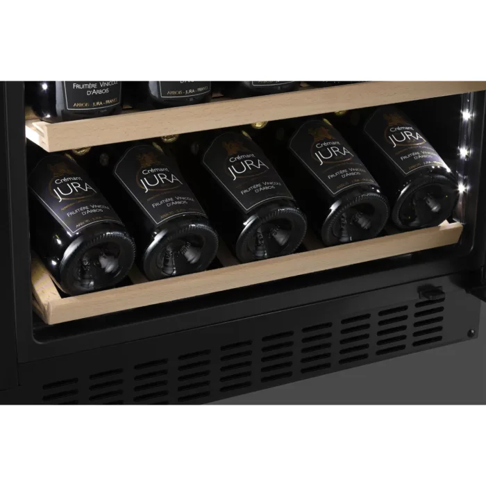 Podpultno ugradana vinska vitrina za 43 boce sa crnim okvirom vrata i jednom zonom hlađenja.